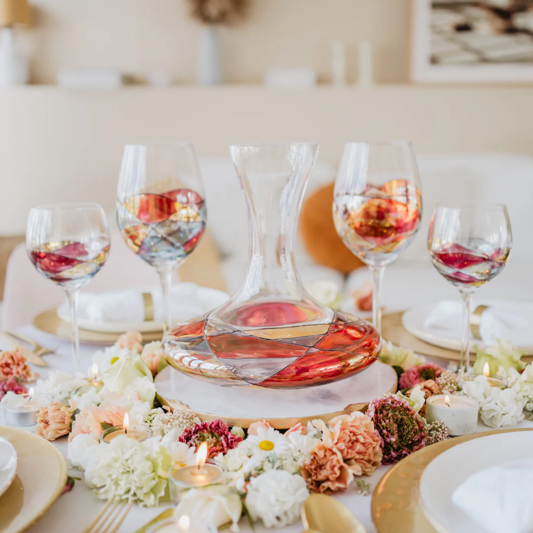 Nothing is more dramatic than wine poured from a handcrafted decanter.